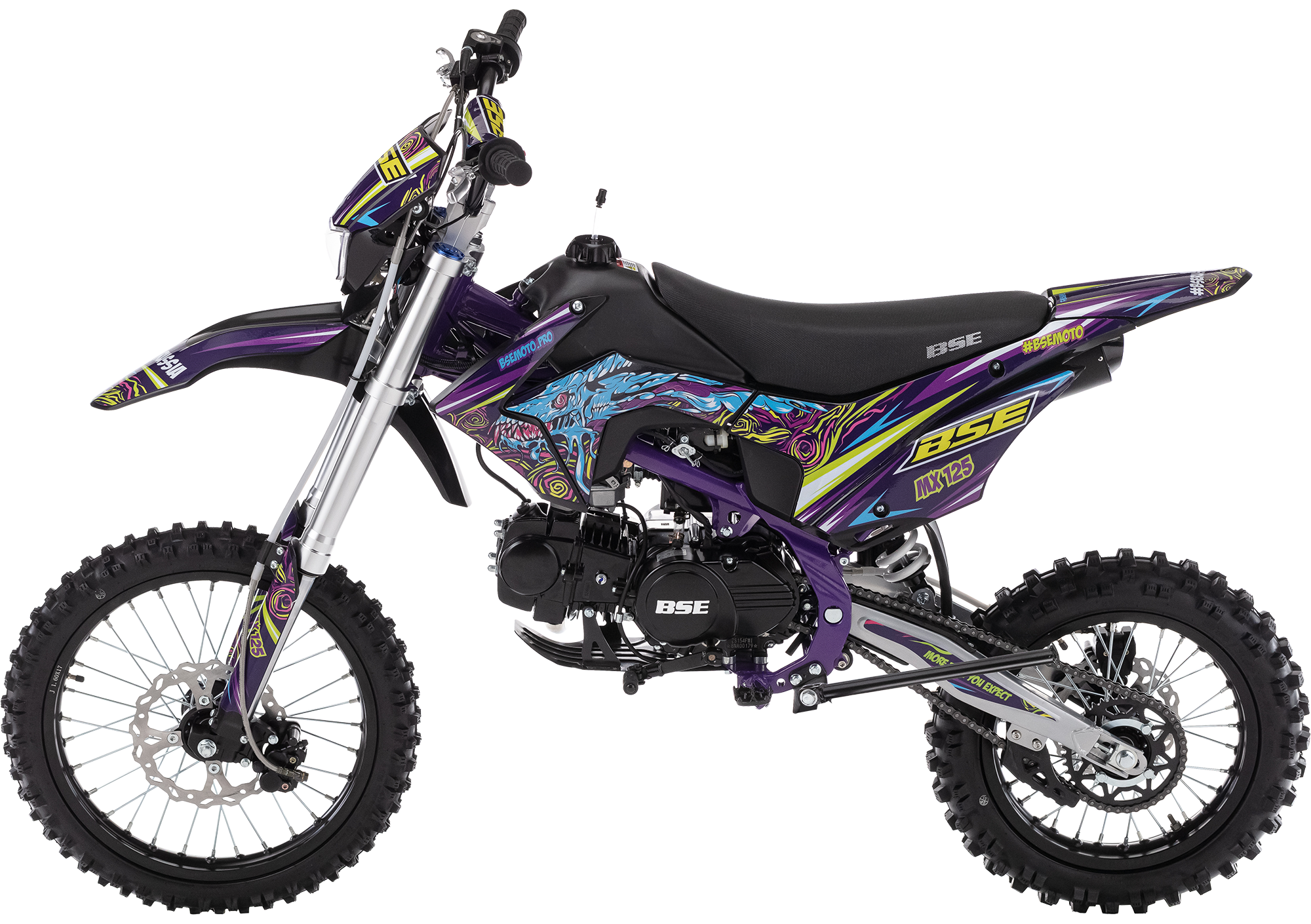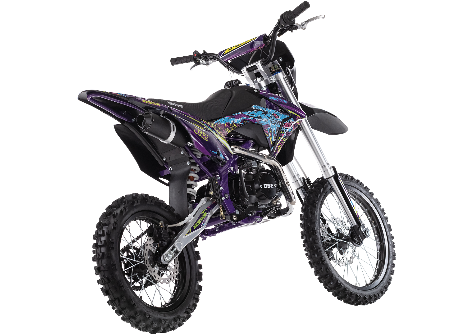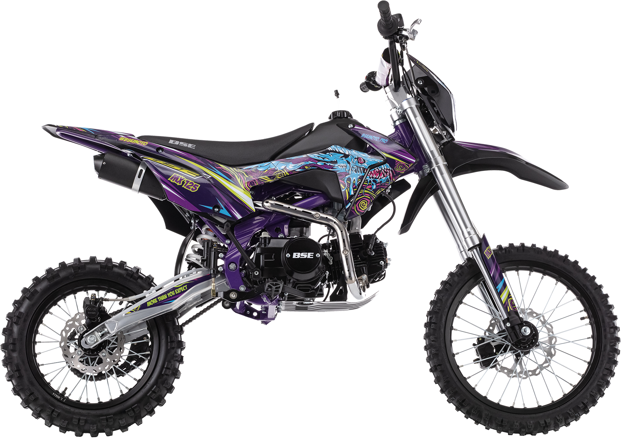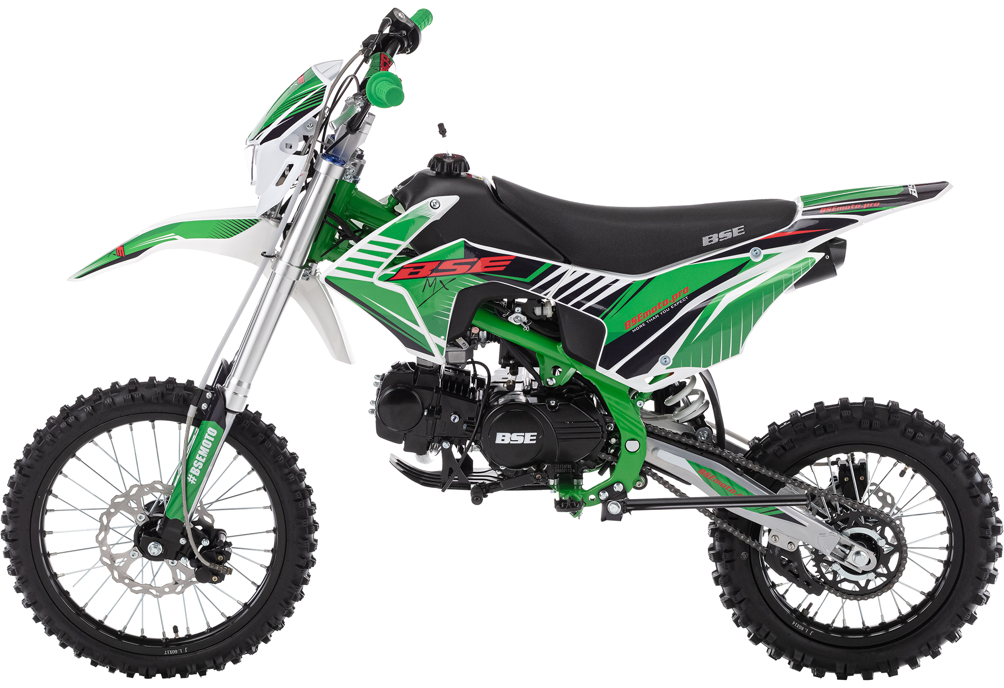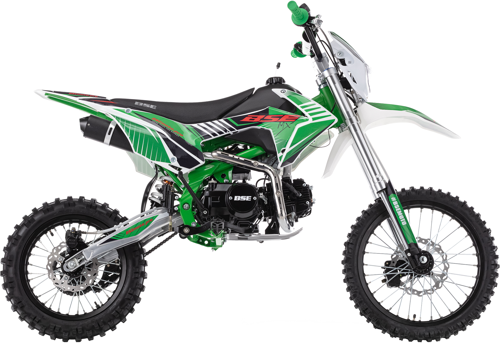Мощный, надёжный и сбалансированный спортивный питбайк. BSE MX обладает всеми качествами спортивного мини-мотоцикла, богатой комплектацией и большим выбором цветов.