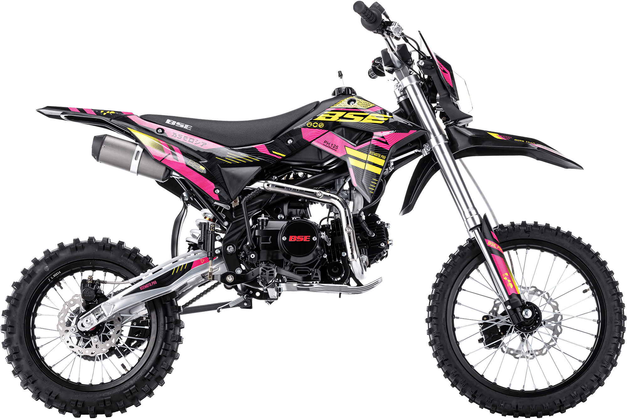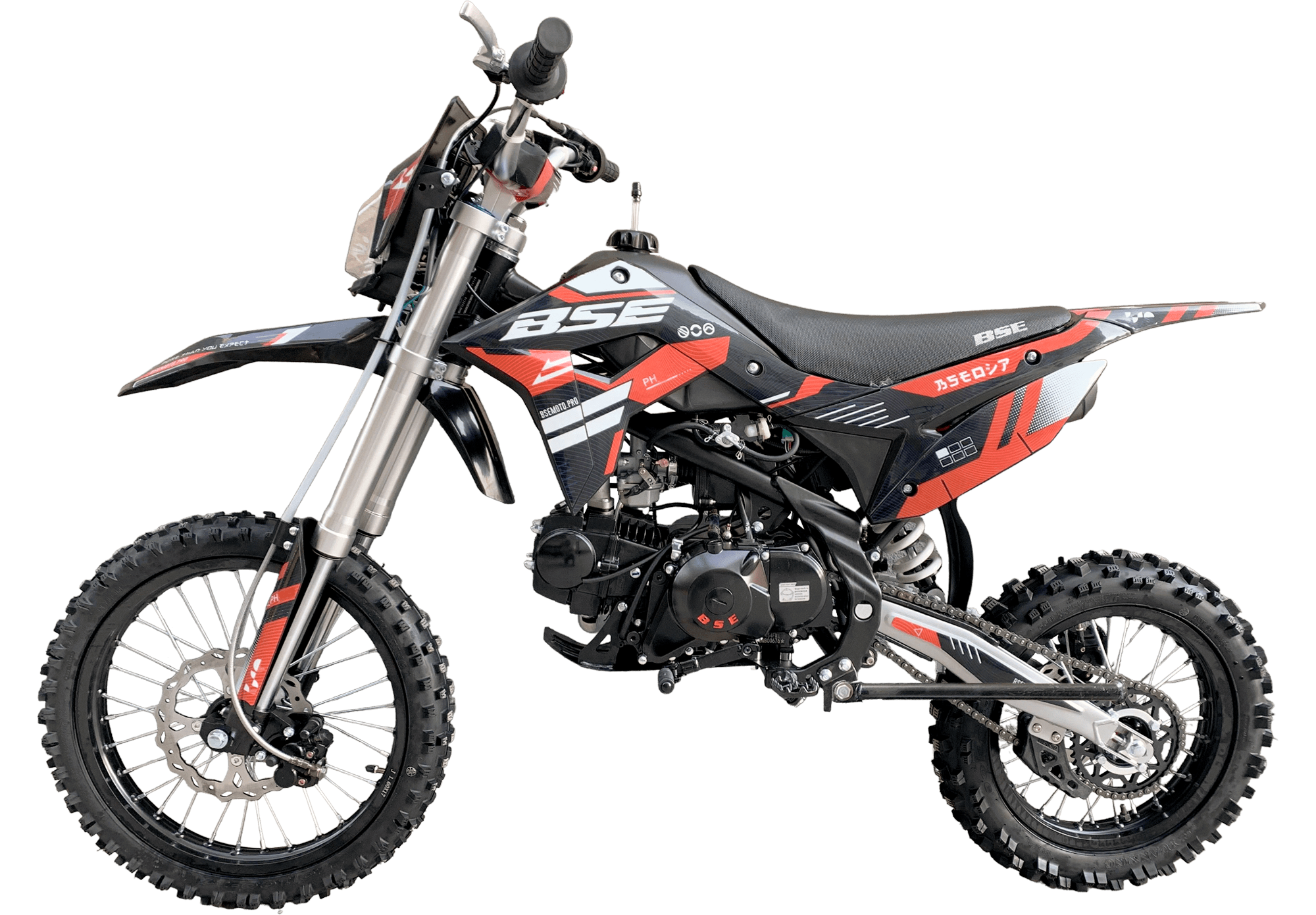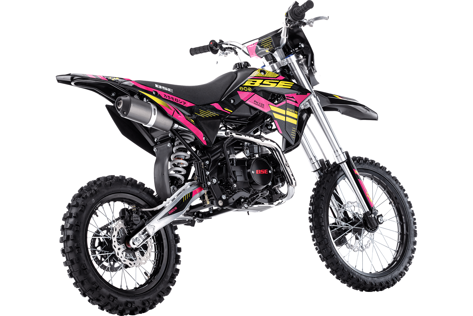 Питбайк оснащен 4-ступенчатой механической трансмиссией. Запуск мотора осуществляется при помощи электростартера или кик-стартера. Подвески с большими ходами: передняя — телескопическая вилка перевёрнуто типа, задняя-моноамортизатор. "Злая" резина, Мощная тормозная система HSK Racing, японские колесные подшипники NTN, усиленная цепь 428 Gold, защита мотора — питбайк полностью укомплектован всем необходимым для покатушек и гонок.