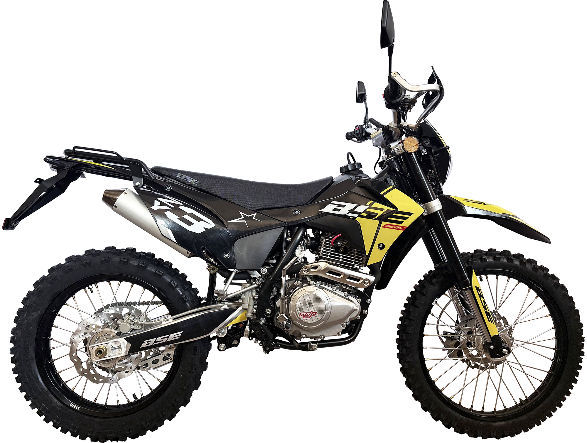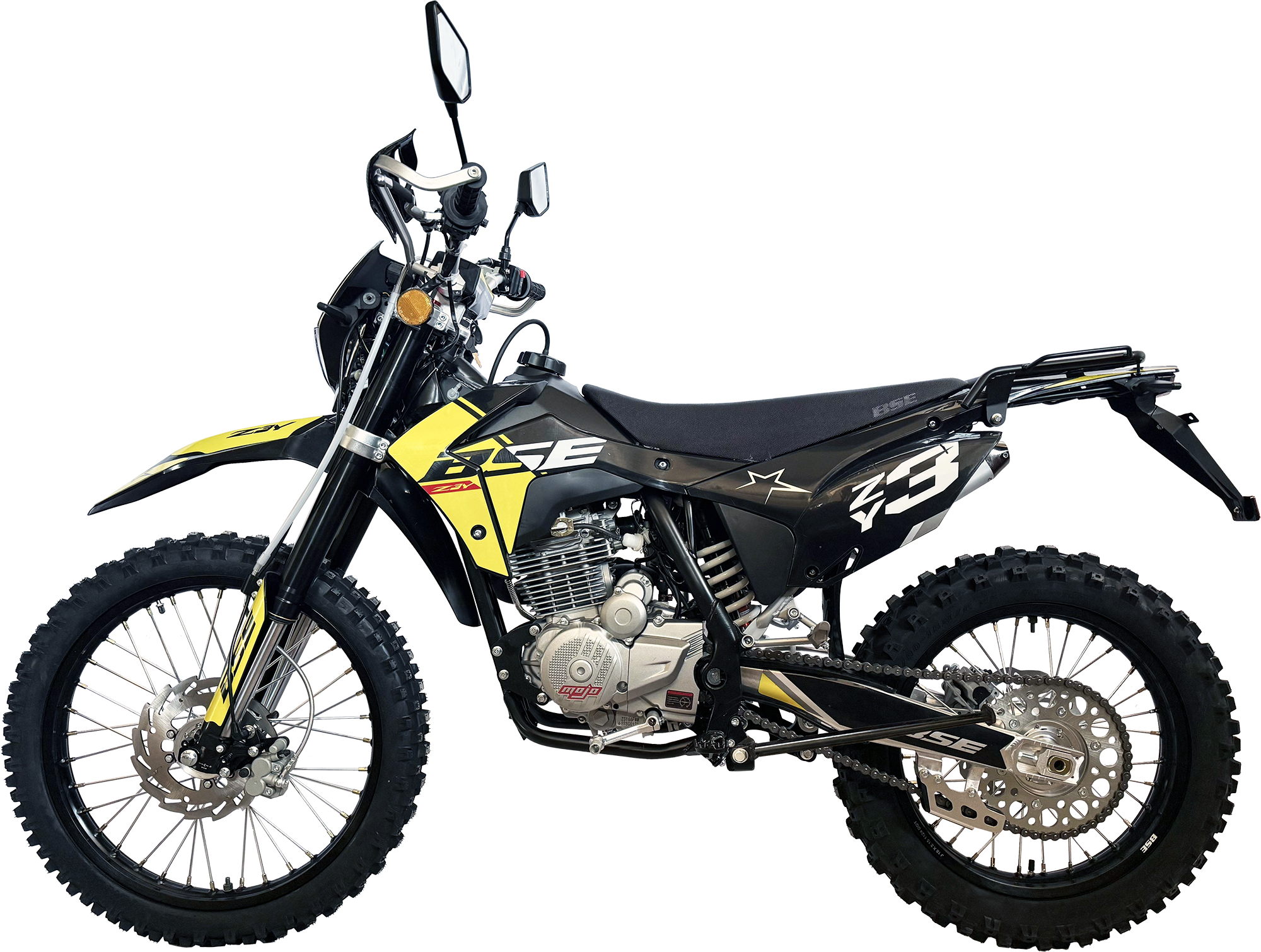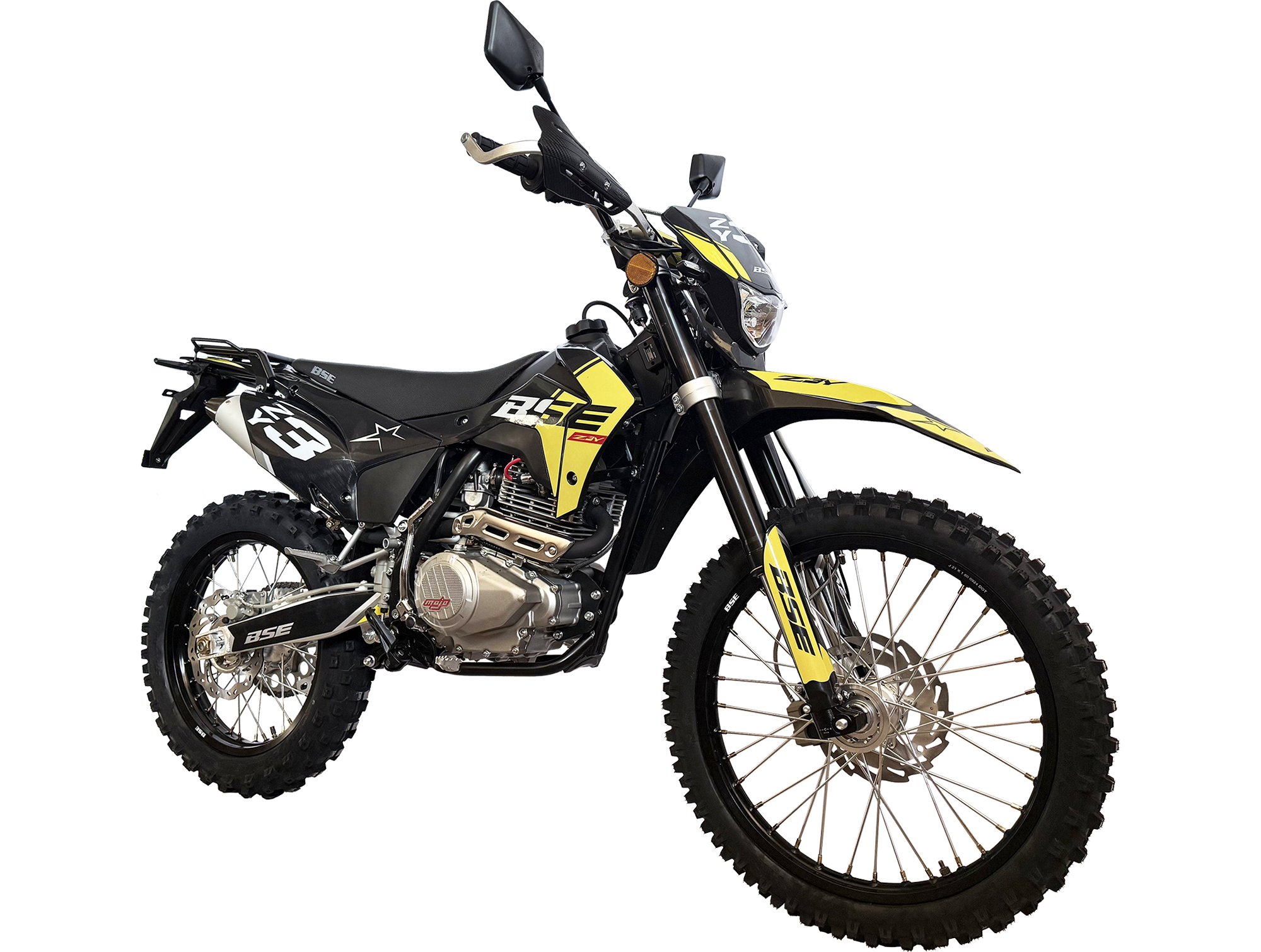 Благодаря ЖК приборной панели вы всегда будете знать о всех главных параметрах мотоцикла. Имеется возможность закрепить поклажу на задний багажник. BSE Z3 Y оснащен мощным мотором 250 куб см Zongshen#nbsp;ZS#nbsp;172#nbsp;FMM мощностью 21 лс, карбюратором Nibbi и стальной рама повышенной жесткости. Компактный, с минимальным весом и фантастической управляемостью - отличный выбор для райдеров среднего уровня. Чрезвычайно удачный, сбалансированный и комфортный мотоцикл для любых типов дорог. Современный яркий дизайн пластика.Z3 Y также не спасует в условиях серьезного бездорожья: прогрессия задней подвески, регулируемая энергоемкая подвески, вилка “перевертыш”, короткоходная ручка газа, защита рук, буксаторы на усиленных ободах, 520 цепь, внедорожная резина.
