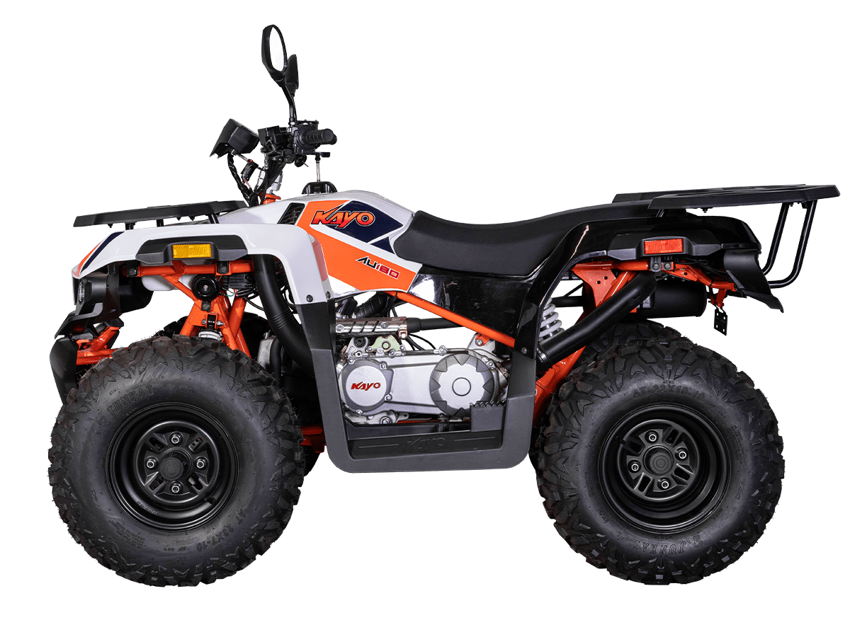 Квадрицикл KAYO AU180 – надёжный и доступный утилитарный квадрицикл с большими возможностями практического применения. Модель пользуется спросом среди поклонников мототехники и любителей бездорожья, поскольку сочетает тяговитый двигатель, энергоёмкую подвеску, отличную эргономику и агрессивный дизайн.