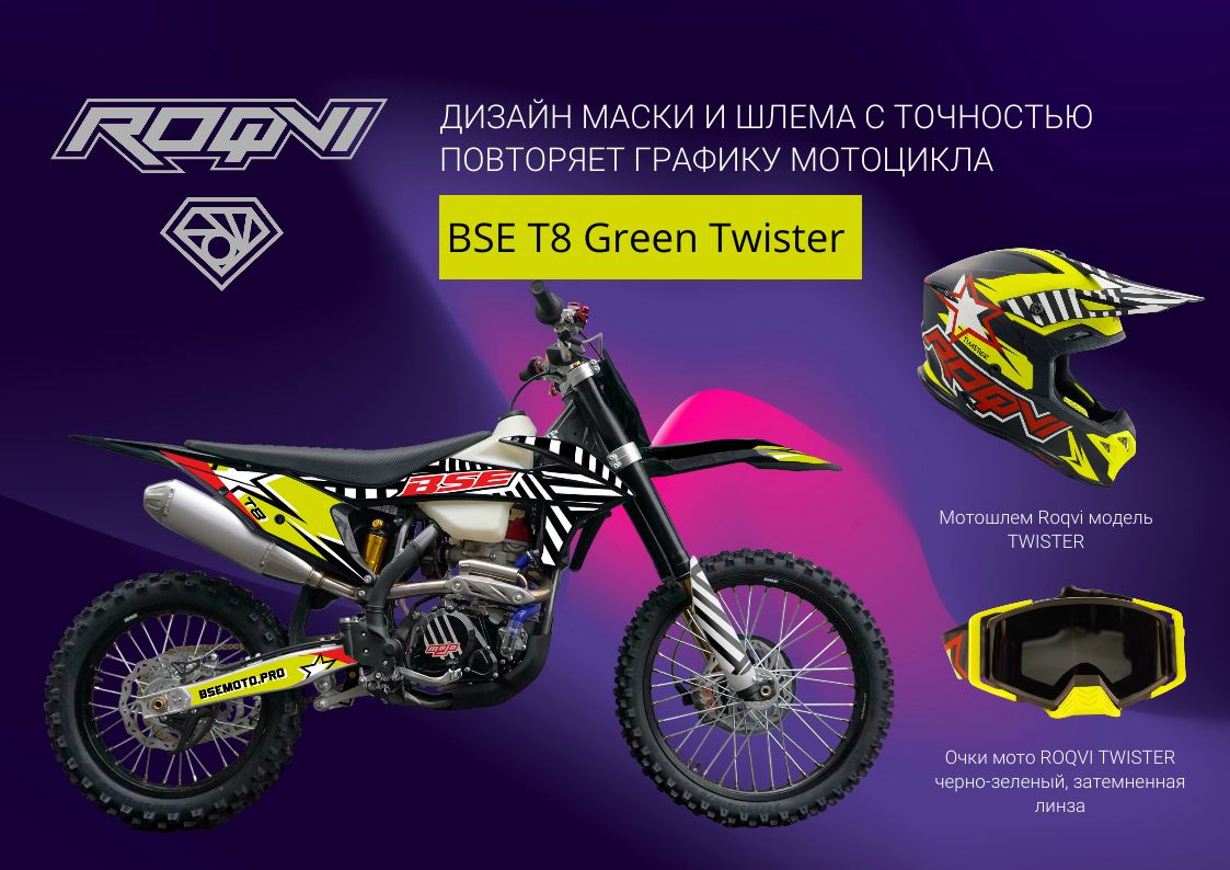Уникальная особенность шлема — эксклюзивный дизайн, выполненный в едином стиле с мотоциклом BSE T8 Green Twister.