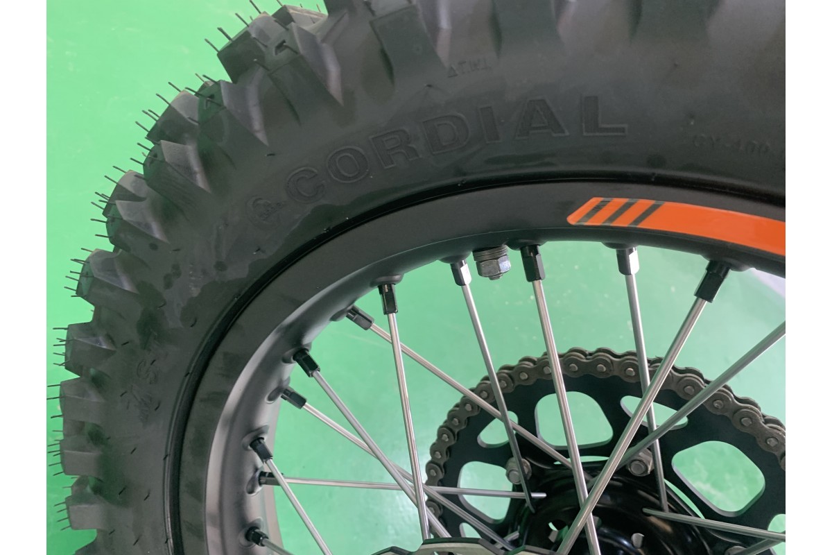 ● колеса – с завода они приходят с кроссовыми покрышками, но переобуть железного коня для опытного гонщика не проблема;