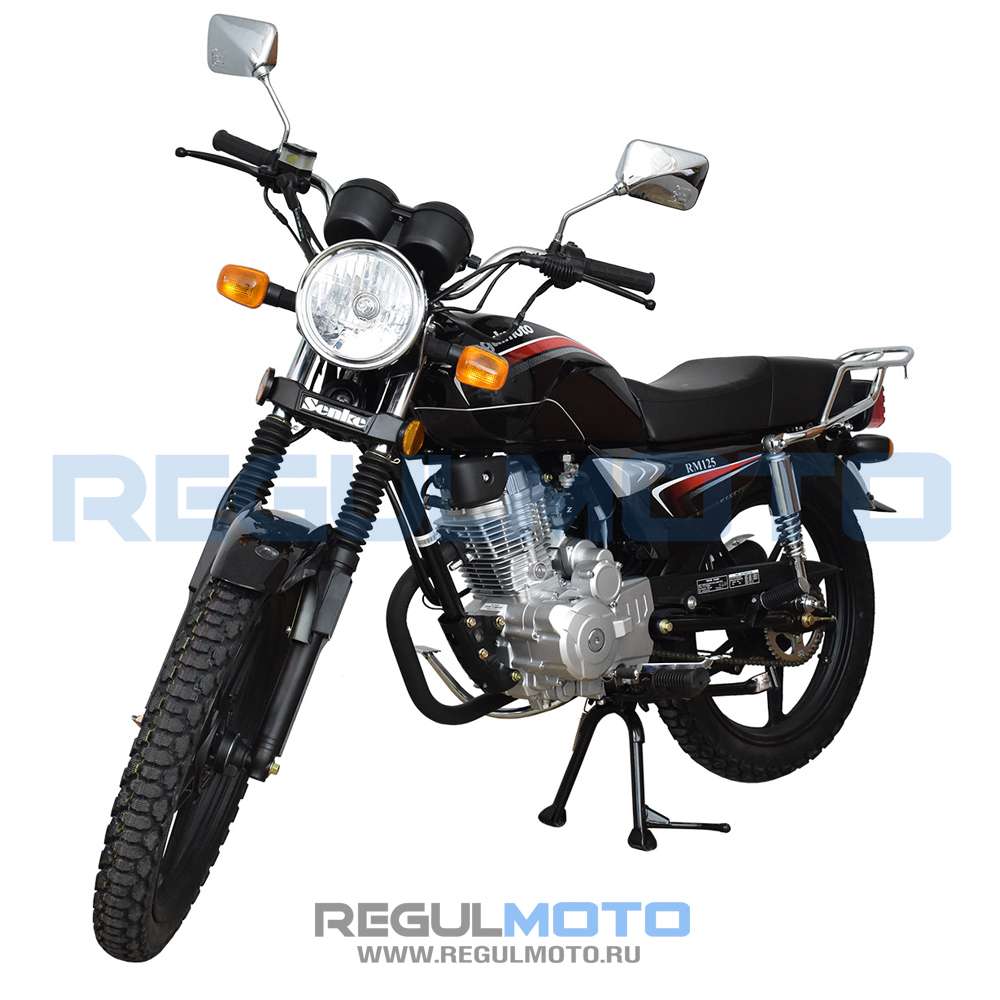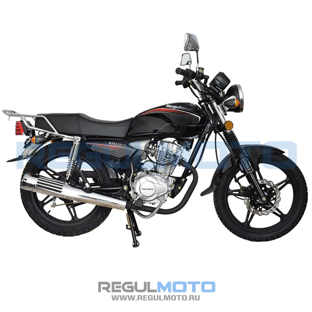 Мотоцикл Regulmoto RM 125 – популярная модель в ряду мототехники известного китайского производителя Senke, благодаря доступности и простоте эксплуатации заслужившая признание поклонников мототехники во всем мире. В раме байка с 18-дюймовыми колесами на легкосплавных дисках установлен одноцилиндровый 4-тактный двигатель с воздушным охлаждением рабочим объемом в 125 см3, способный развивать мощность 10,8 лошадиных сил.