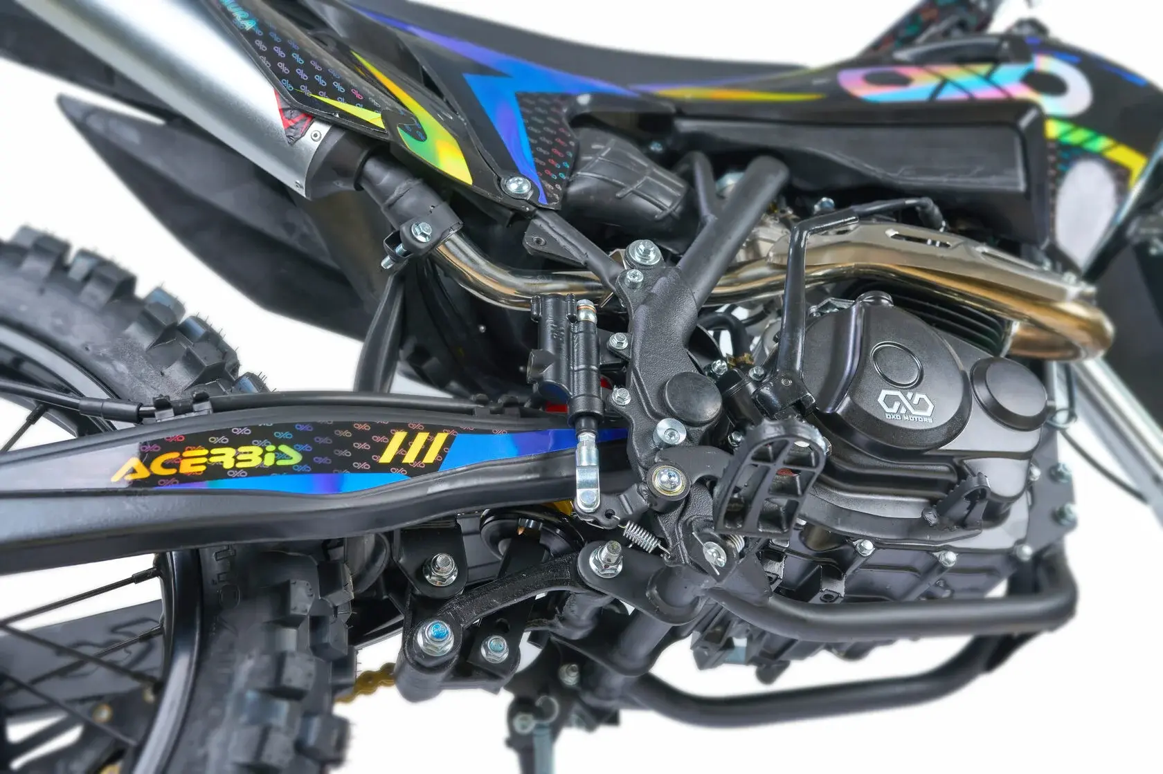 Рама мотоцикла OXO производится из труб шестигранного сечения хром-молибденовой стали, которая является очень прочной и легкой. Геометрия рамы, благодаря правильно выверенному центру тяжести и углу наклона вилки - способствует наилучшей управляемости устойчивости мотоцикла на низкой скорости.