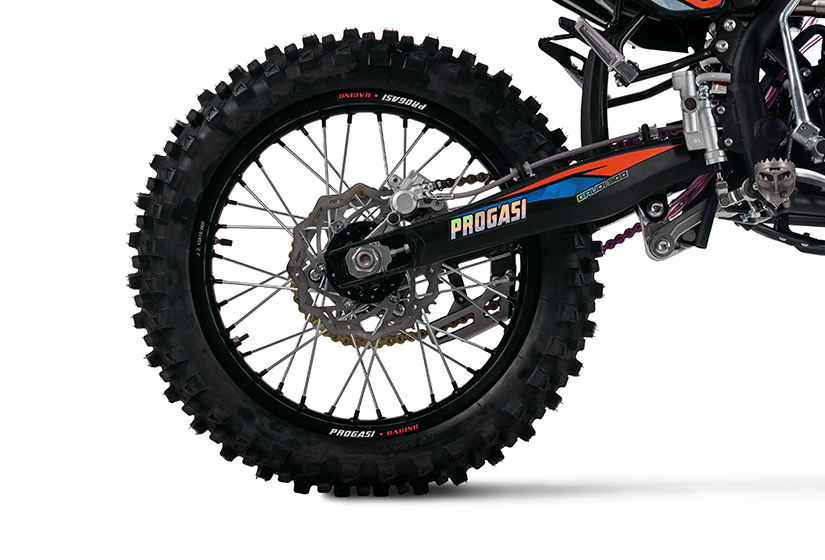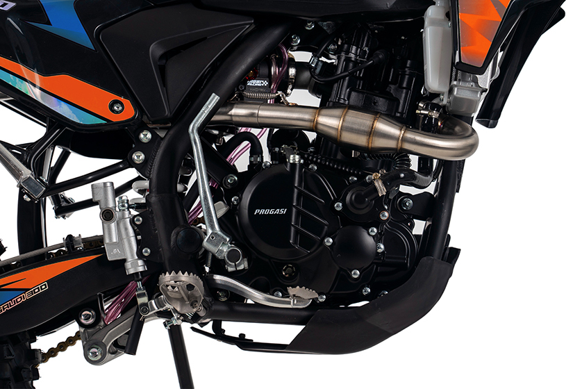 Тормоза – это важнейший компонент мотоцикла, от которого напрямую зависит безопасность райдера, а также скорость прохождения поворотов. Для безупречного результата на всех моделях PROGASI установлены дополнительные расширительные бачки и армированные шланги тормозной системы. Спереди установлена 2-поршневая тормозная система и 1-поршневая - сзади.