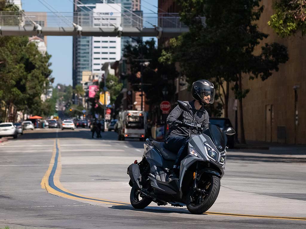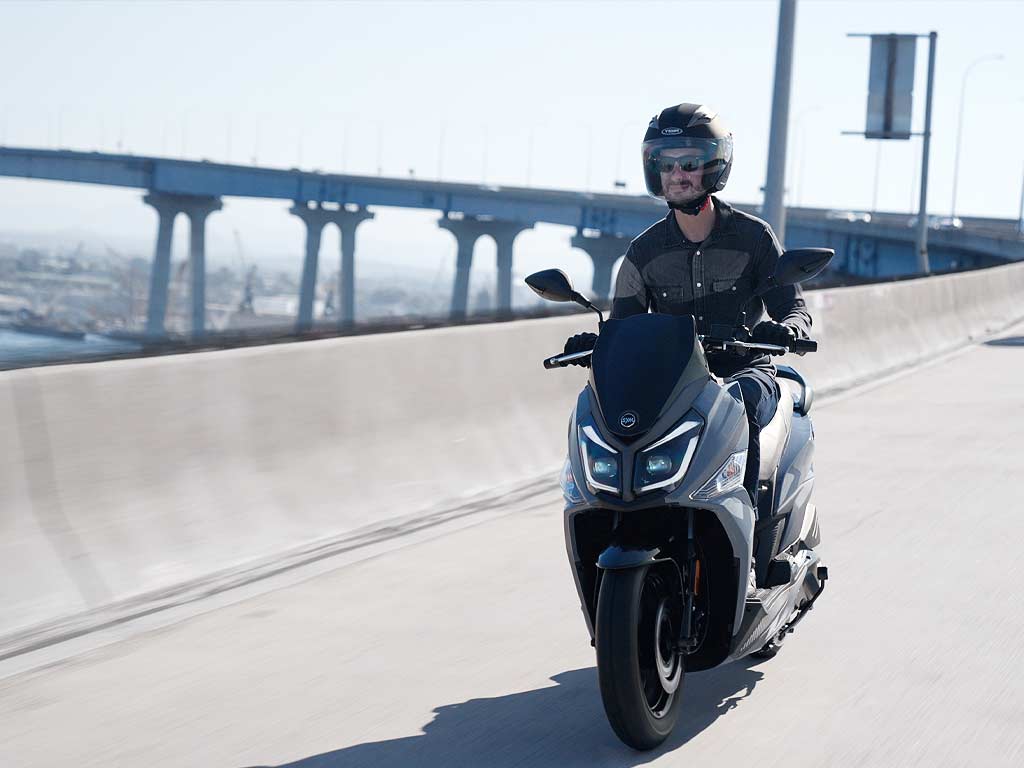Модель отлично продается на европейском рынке. 14-и дюймовые колеса и узкий корпус идеально подходят для маневрирования в городском потоке. Вы будете максимально заметны, благодаря современному дизайну с LED оптикой. С загородными дорогами скутер справляется благодаря регулируемой подвеске.